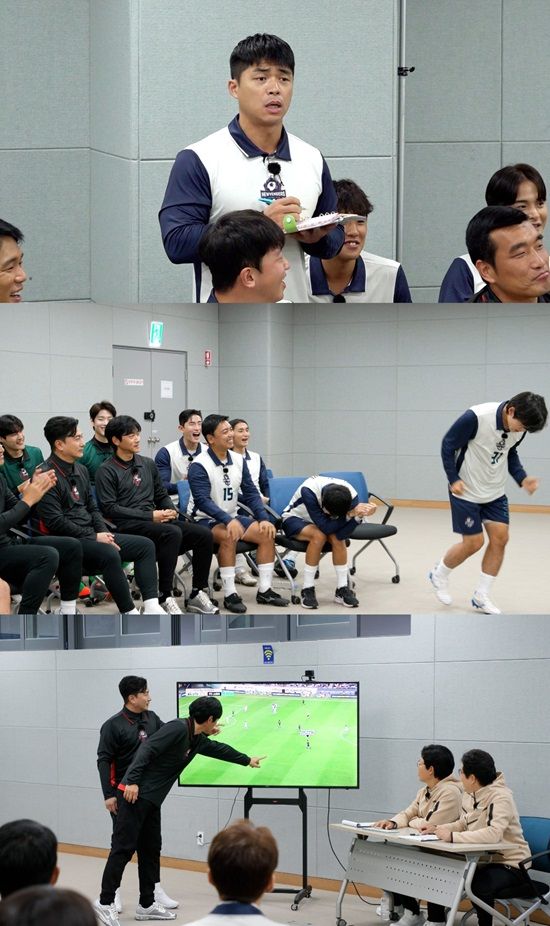 '어쩌다뉴벤져스' 선수단은 안정환 감독과 김남일 코치의 활약상으로 시청각 교육을 진행하며 감탄사를 연발한다.