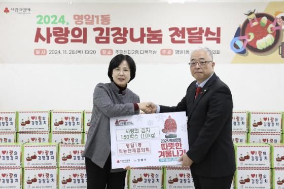 이번 ‘사랑의 김장 나눔 전달식’은 2025년 따뜻한 겨울나기 사업의 일환으로, 명일1동 직능단체협의회가 주관했다. 거동이 불편한 취약 가구에는 동주민센터 직원들이 직접 방문해 정성껏 준비한 김장 김치를 전달하며 온정을 나눴다.