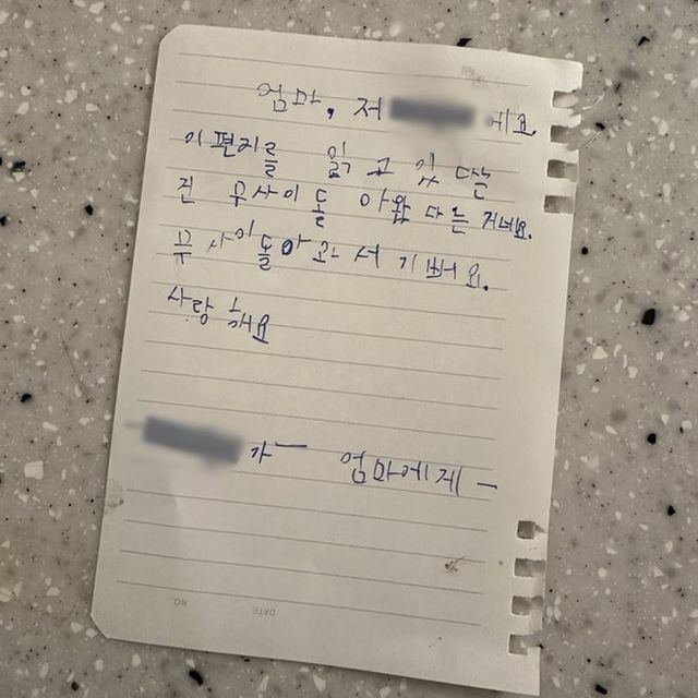 편지에는 "엄마, 저 OO이에요. 이 편지를 읽고 있다는 건 무사히 돌아왔다는 거네요. 무사히 돌아와서 기뻐요. 사랑해요"라고 적혀 있다. 편지에는 엄마를 걱정하는 아이의 마음이 드러나 많은 이들을 울컥하게 했다.