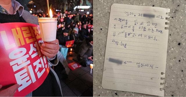 윤석열 대통령 퇴진 촉구 촛불집회에 다녀온 네티즌이 자녀가 남긴 응원의 편지를 SNS에 공유해 눈길을 끌고 있다.