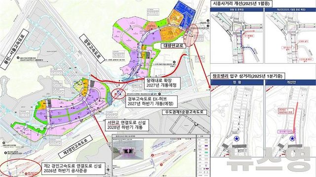 아울러 경부고속도로 상 EX허브(고속도로 대중교통 환승시설)의 정식 개통 전에 임시 정류장을 개설하고, 달래내로(금토삼거리 ~ 대왕판교IC 구간)의 우선 확장 방안도 추진한다.
