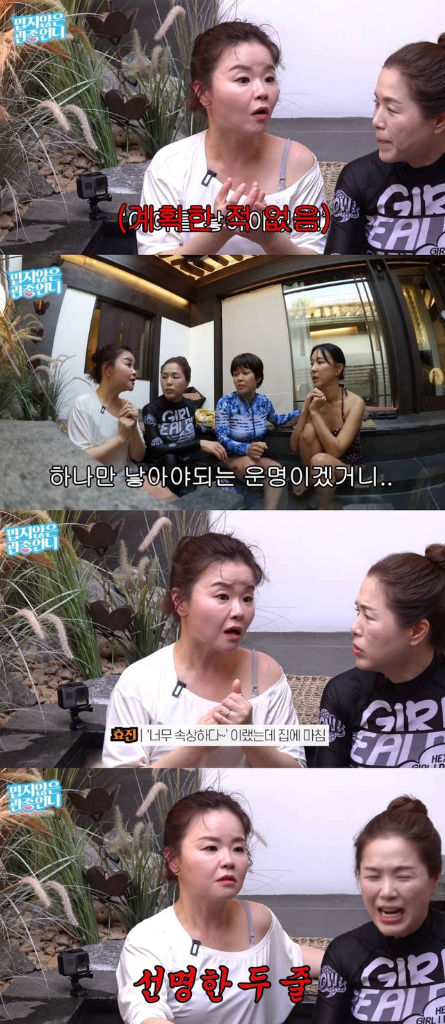 조혜련이 좀 더 자세히 궁금해하자 김효진은 "생리를 안 하더라. 그래서 45살이라 조기 완경인 줄 알고 '속상하다' 이러고 있었는데 집에 마침 첫째 딸 때 있었던 임신테스트기가 있었다. 혹시나 하는 마음으로 테스트했는데 희미하게 나오더라. 약국에서 새로 사서 했더니 선명하게 두 줄이 나왔다"고 설명을 더했다.
