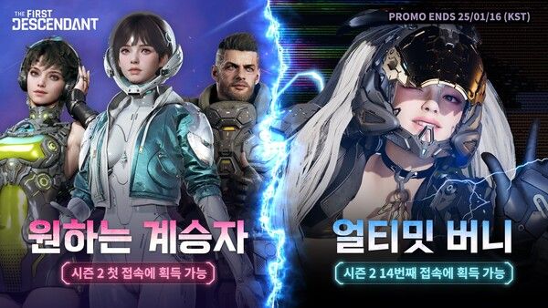 넥슨은 이번 업데이트를 기념해 다양한 이벤트를 진행한다. 오는 2024년 1월 2일까지 각 주차별 도전 과제를 완료하면 ‘스프레이’, ‘부착물’, ‘성장 재화’ 등을 제공하는 ‘계승자의 연말 나기 이벤트’를 실시한다. 또한, 2024년 1월 16일까지 ‘겨울 축제 출석 이벤트’를 통해 누적 접속일에 따라 ‘얼티밋 버니’, ‘샤렌 스킨’을 획득할 수 있는 ‘계승자 특별 토큰’과 궁극 무기, 치장 아이템 등 풍성한 보상을 선물한다.