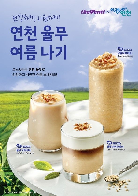 실제 이번 여름시즌에는 연천군의 특산물인 율무를 활용한 ‘냉율무 쉐이키’, ‘율무 아인슈페너’, ‘율무 오트라떼’ 등을 출시하며 연천 율무를 소비자들에게 알린 바 있다.