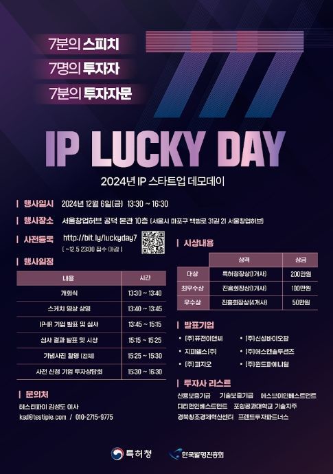 동 행사는 새싹기업(스타트업)의 성장에 있어서 지식재산의 중요성을 알리고, 우수 지식재산을 보유한 유망 새싹기업에게 투자유치 기회를 제공하기 위해 마련됐다. 유망 새싹기업의 기업 투자설명 발표(IR 피칭) 및 우수기업 시상식과 더불어 투자 자문, 기업홍보, 참여자 교류회 등 다양한 프로그램이 진행된다.