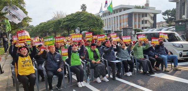 전국교육공무직본부 제주지부는 이날 오전 제주도교육청 앞에서 총파업 대회를 열어 기본급·근속수당과 실질임금 인상 등을 요구했다.