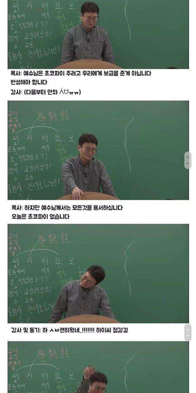 목사 : 초코파이 먹으러 교회 오면 안 됩니다.