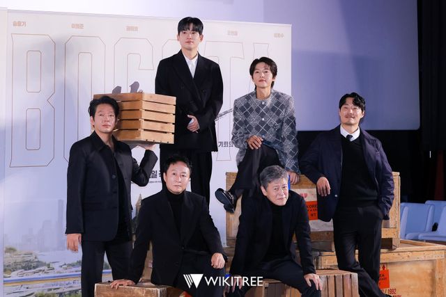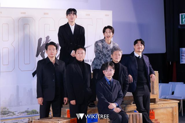 6일 오전 메가박스 코엑스에서 '보고타: 마지막 기회의 땅' 제작보고회가 진행됐다. 제작발표회에 참석한 송중기, 이희준, 권해효, 박지환, 조현철, 김종수가 포즈를 취하고 있다.