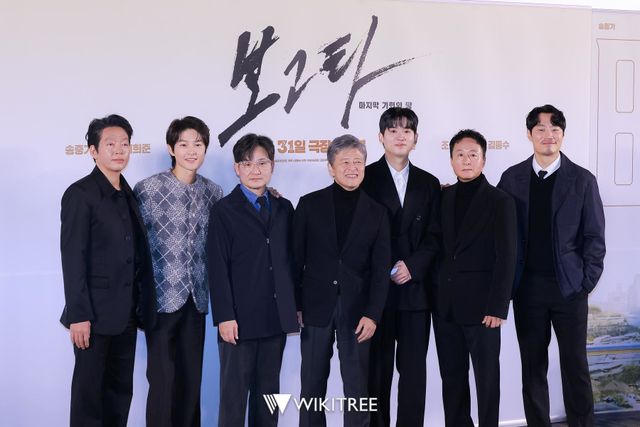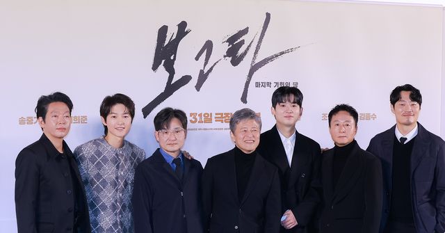 6일 오전 메가박스 코엑스에서 '보고타: 마지막 기회의 땅' 제작보고회가 진행됐다. 제작발표회에 참석한 송중기, 이희준, 권해효, 박지환, 조현철, 김종수, 김성제 감독이 포즈를 취하고 있다.