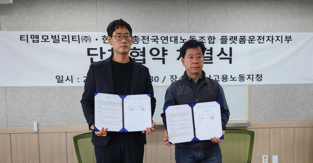 티맵모빌리티는 한국노총 전국연대노조 플랫폼운전자지부와 고용노동부 성남고용노동지청에서 단체교섭을 체결했다고 6일 밝혔다.