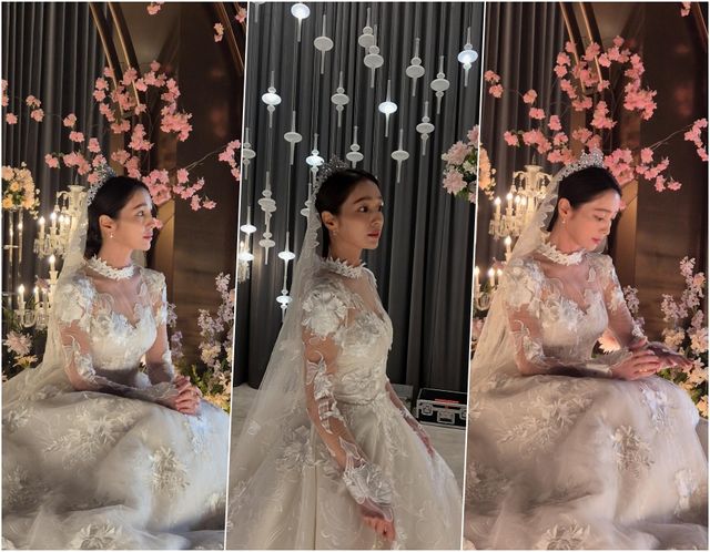 6일 이민정은 자신의 인스타그램에 "다시 웨딩드레스"라는 글과 함께 드라마 촬영 중인 듯한 모습을 공개했다.