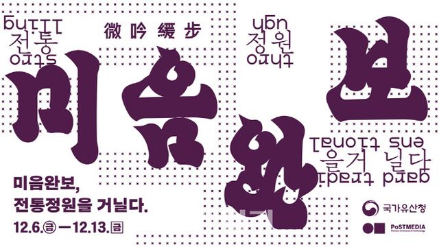 ‘미음완보’는 정극인(1401~1481)의 ‘상춘곡’(賞春曲) 속 글귀로 ‘나직이 읊조리며 천천히 걷다’라는 뜻이다. 단순히 정원을 감상하는 것을 넘어 자연과 교감하고 내면을 바라보는 심미적 과정을 담은 전시라는 점을 강조하고자 전시 제목에 포함했다고 국가유산청은 전했다.