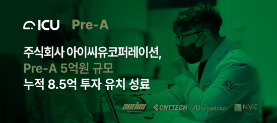 주식회사 아이씨유코퍼레이션(ICUcorporation, 대표자 김동혁)이 프리A(Pre-A) 라운드에서 총 5억원 규모의 투자를 유치했다고 6일 밝혔다. 이번 라운드에서는 부울경 메가 스타트업 징검다리펀드 제1호(시리즈벤처스, 엔브이씨파트너스)에서 3억원, 에이아이엔젤-씨엔티테크 개인투자조합 2호와 에이아이엔젤 개인투자조합으로부터 총 2억원 규모의 프리 시리즈A 투자를 받았다.