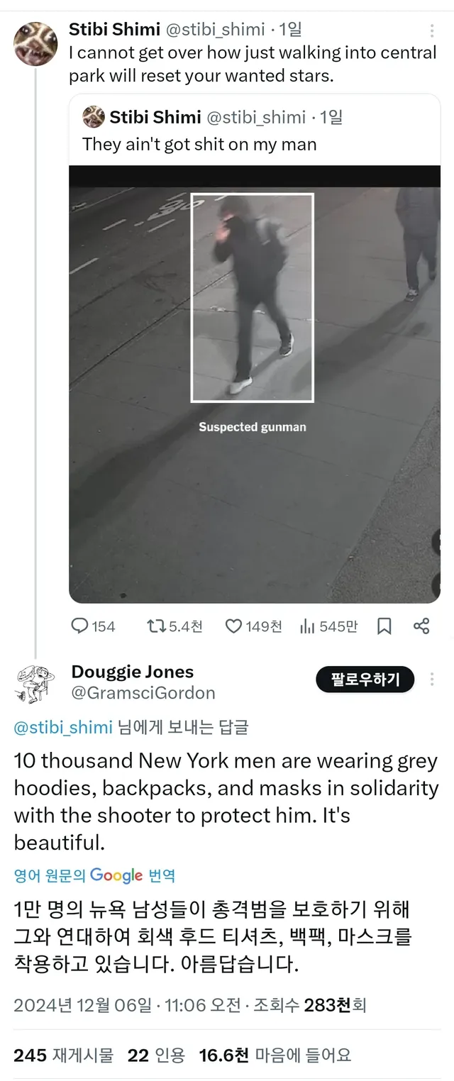 1만명의 뉴욕시민들이 이 의인을 지키기 위해서 동일한 옷을 입고 다닌다고 함
