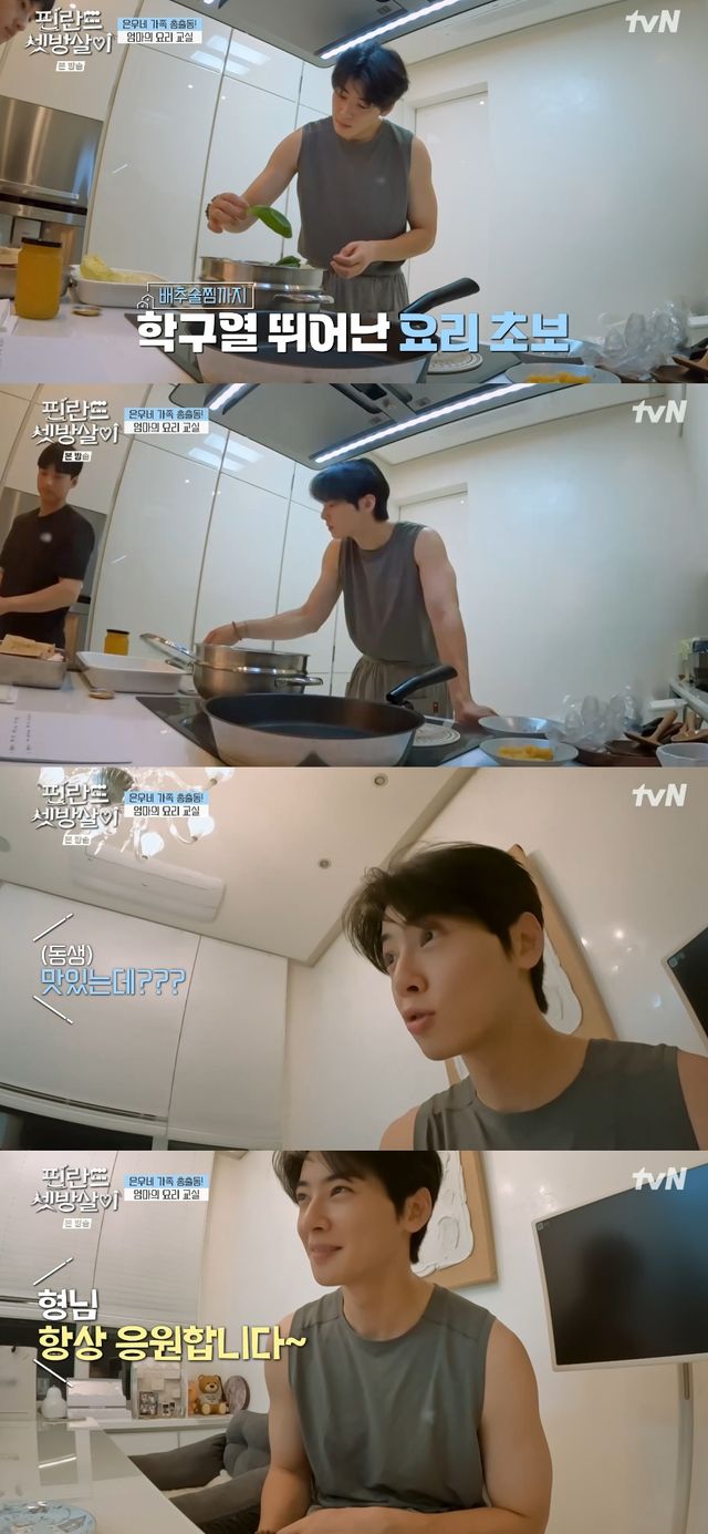 차은우는 연이어 여러 요리를 연습했다. 이때 동생인 이동휘 역시 형의 요리 연습을 지켜보며 도와줬다. 차은우의 어머니와 동생은 화면 안에 일부 비춰져 눈길을 끌었다.