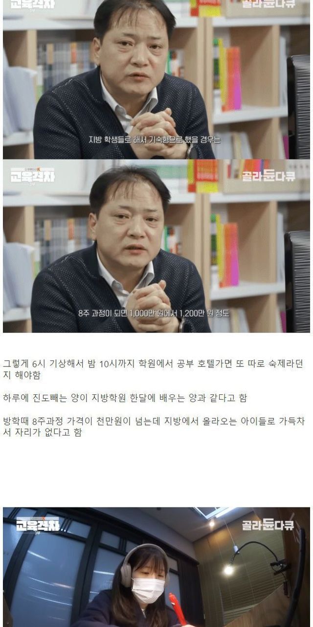 방학이면 지방에서 올라온 아이들로 가득찬다는 현재 대치동 상황.