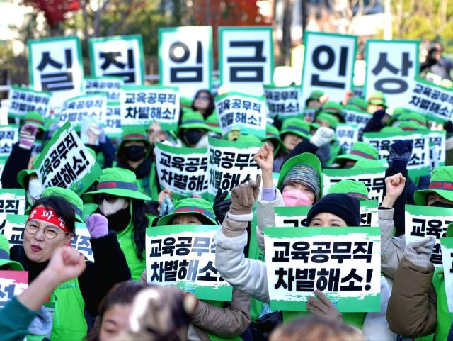 서울·부산 등 전국 17개 시·도교육청에서 파업대회를 연 교육공무직본부는 이날 결의문에서 "우리는 모두 학교에 없어서는 안 될 중요한 교육복지 노동자다. 우리 중 누구라도 멈춰 선다면, 학교도 공교육도 정상적으로 기능할 수 없다"며 "그럼에도 자행되는 교육현장의 불평등과 차별을 해소하기 위해 경고의 의미를 담아 학교를 잠시 멈춰 세웠다"고 했다.