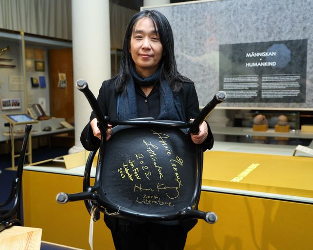 아울러 한강 작가는 이날 박물관 안에 있는 레스토랑 의자에 친필 서명도 남겼다. 수상자들이 의자 좌판 밑 부분에 새기는 친필 서명은 노벨상만의 특별 방명록으로 평가 받는다. 노벨상 제정 100주년인 2001년부터 시작된 전통이다. 의자에는 별도로 어느 수상자가 서명한 의자인 지 표시해두지 않아 방문객들은 식사 중 의자를 뒤집어보며 서명을 확인할 수 있다.