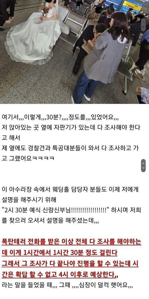 결혼식날 폭탄 테러 협박을 받은 신부.