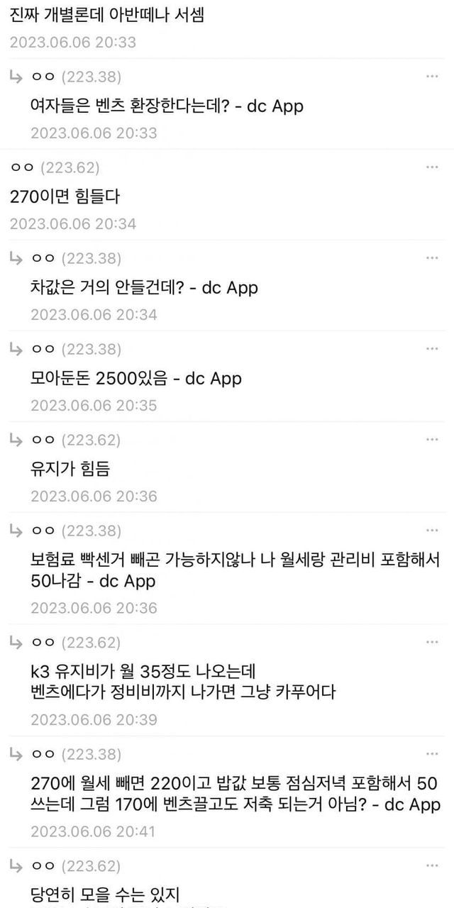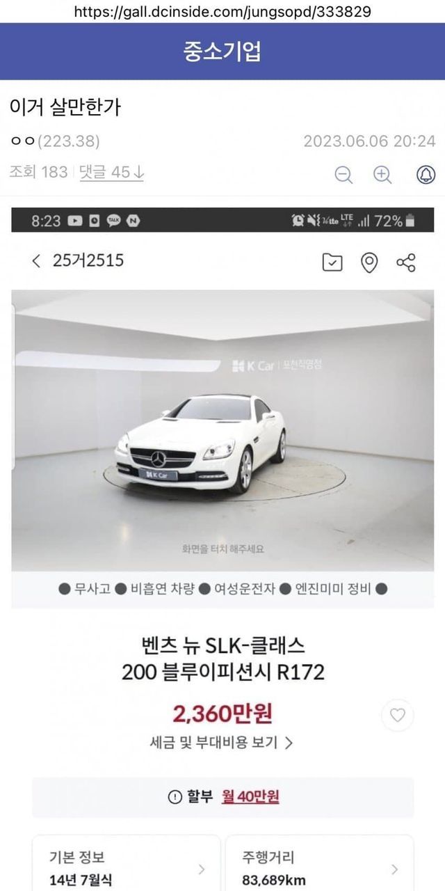 중소갤…월270…중고SLK벤츠.