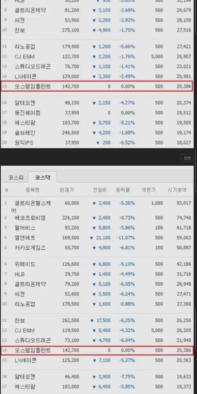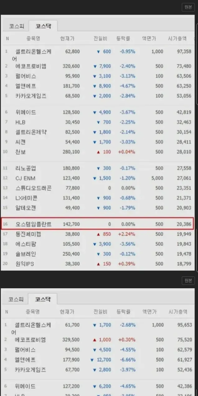 2. 정지된기간동안 코스닥 폭락 다른주식들 다 나락감