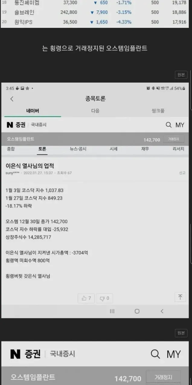1.회삿돈 휭령하여 주식이 거래정지됨