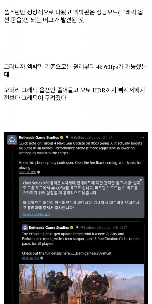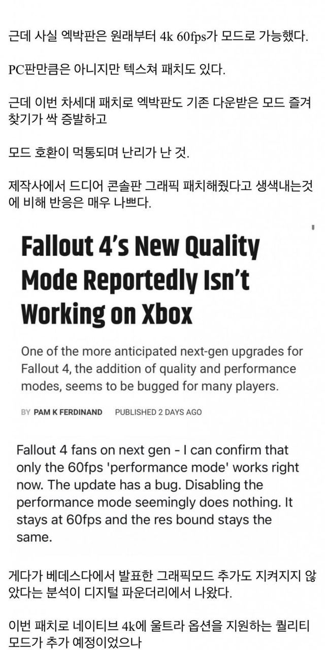 폴아웃4 차세대패치 엑스박스판 논란