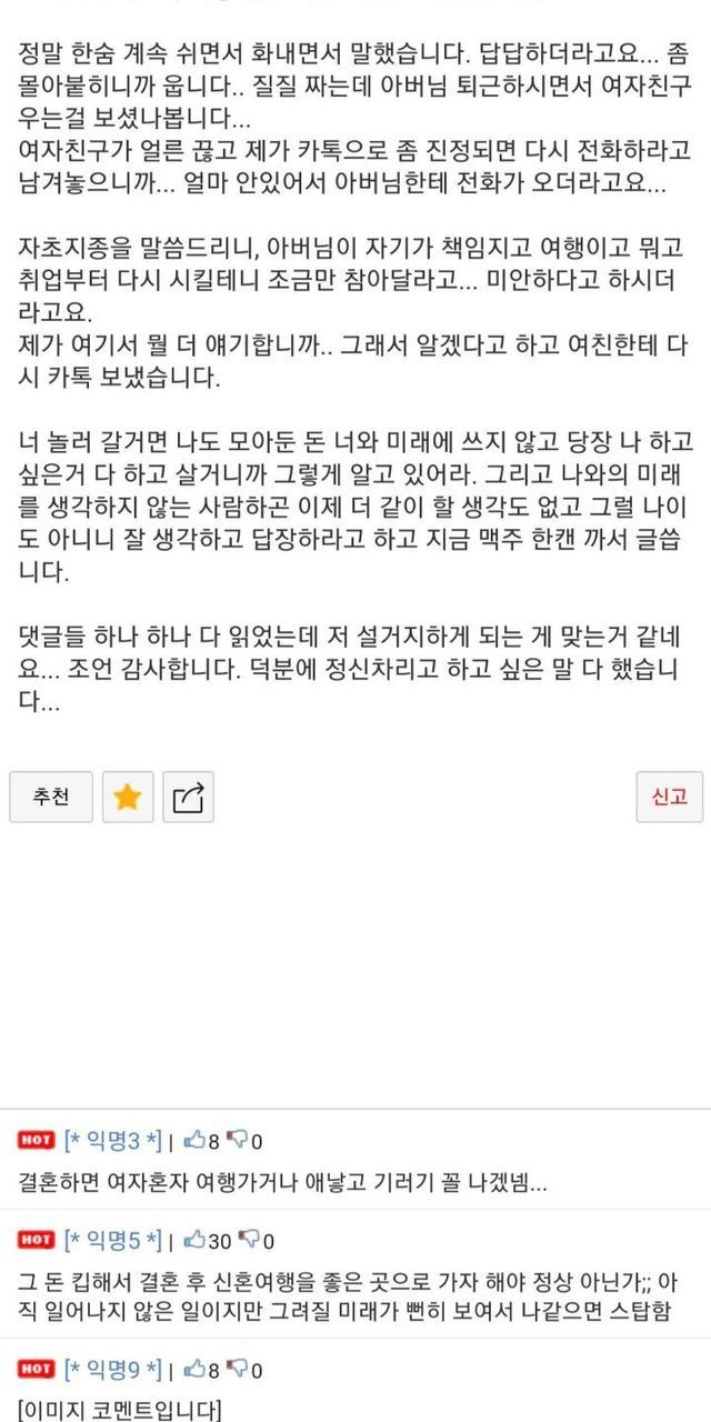 결혼 약속한 여친이 유럽 한달 살기를 하고 싶다고 합니다.