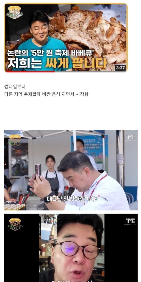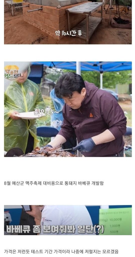 백종원이 예산군 맥주 축제를 위해 만들고 있는 메뉴.