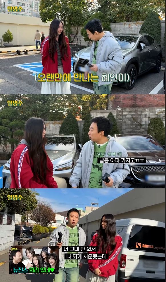 이어 박명수는 "발등은 아픈 건 괜찮냐"라며 안부를 물었다. 앞서 '할명수'에 뉴진스가 게스트로 출연할 당시 혜인은 발등 부상으로 참석하지 못했다.