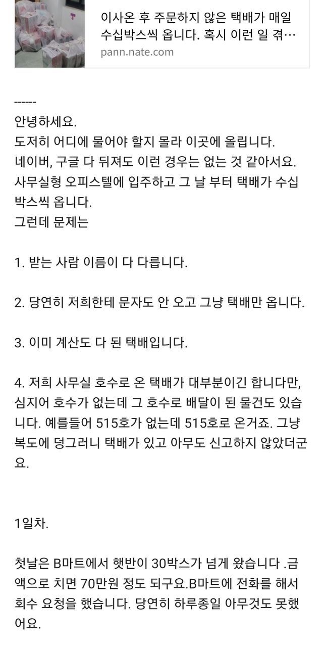 이사온 후 주문하지 않은 택배가 매일 수십박스씩 옵니다. 혹시 이런 일 겪으신분 계실까요?.