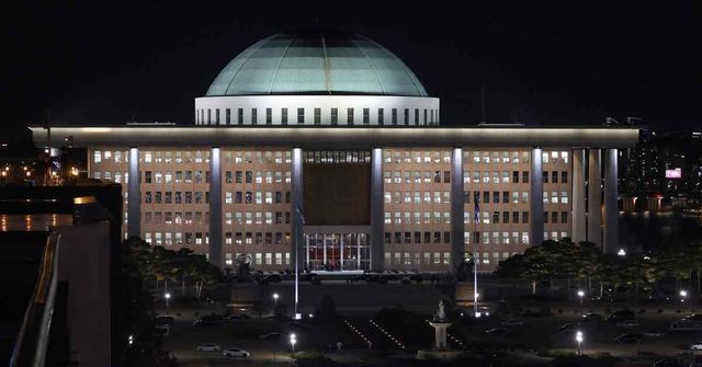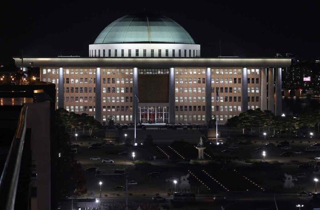 윤석열 대통령 탄핵소추안 표결을 하루 앞둔 6일 오후 서울 여의도 국회의사당의 불이 환하게 켜져 있다. / 뉴스1
