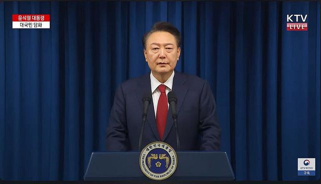 윤석열 대통령이 7일 서울 용산 대통령실 청사에서 계엄 선포 관련 대국민 담화를 하고 있다. / KTV 캡처