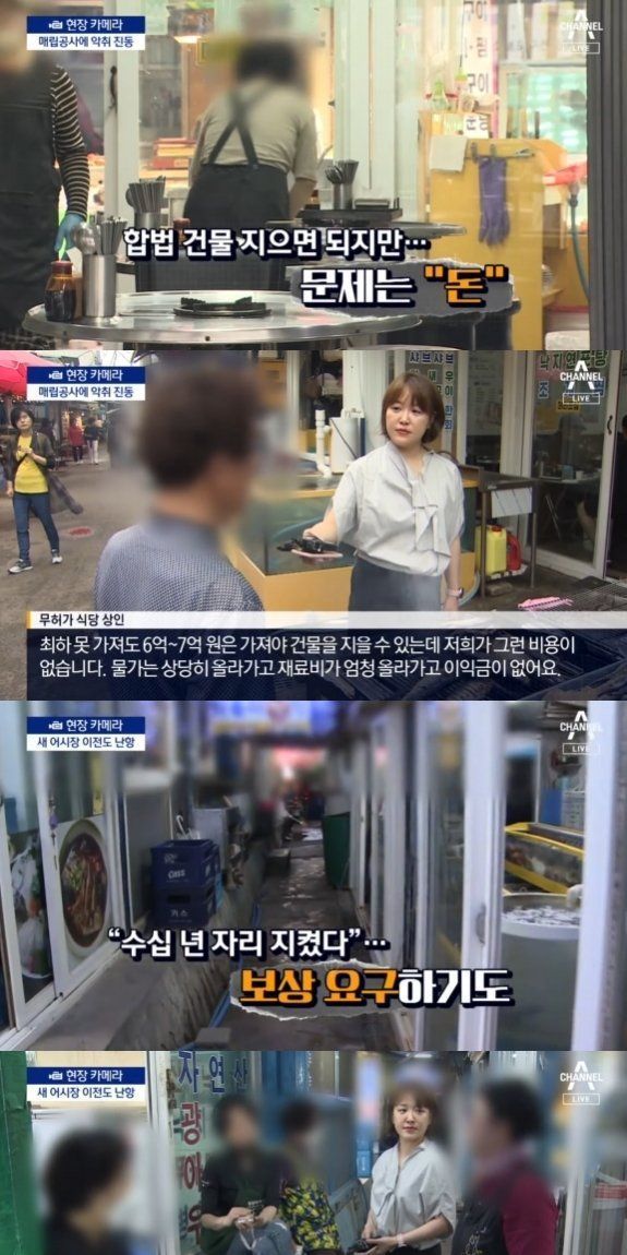 상인들은 무허가 상점이라도 수십년간 한자리를 지켜온데 대한 보상을 요구하는 상황