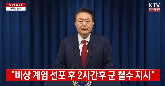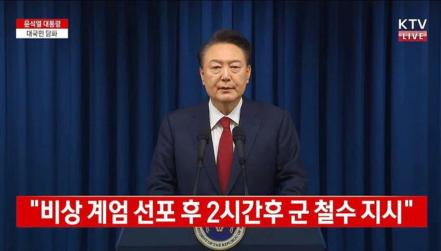 윤석열 대통령이 7일 서울 용산 대통령실 청사에서 계엄 선포 관련 대국민 담화를 하고 있다. / KTV 캡처