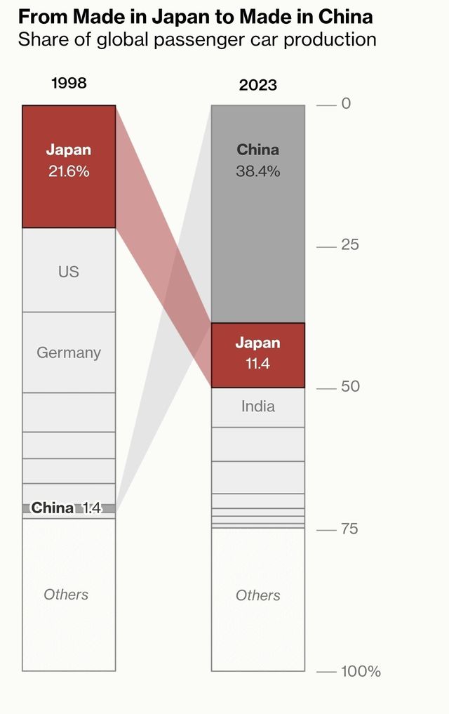 [ 세계 최대 자동차 생산국 지위는 일본에서 중국으로 넘어갔고 미국과 독일은 이제 3위안에도 들지 못함 ]