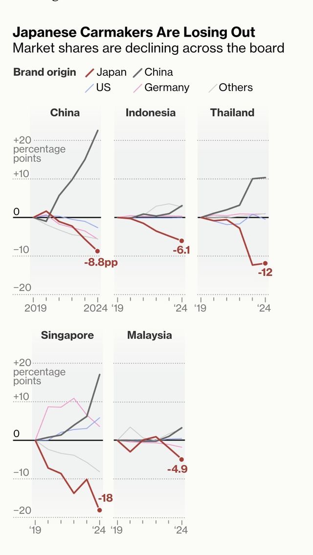 게다가 전기차 기술이나 배터리에서 중국이 일본보다 훨씬 앞서기에 관세가 있지만 미국 유럽 시장에서도 똑같은 일이 일어나지 말란법 없기 때문.