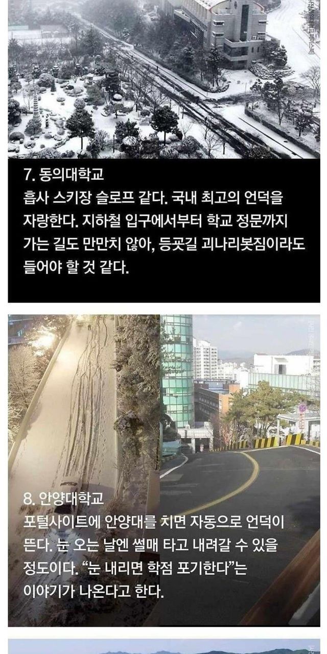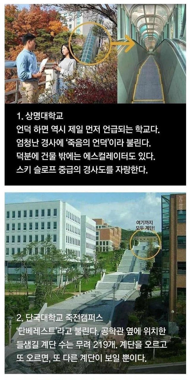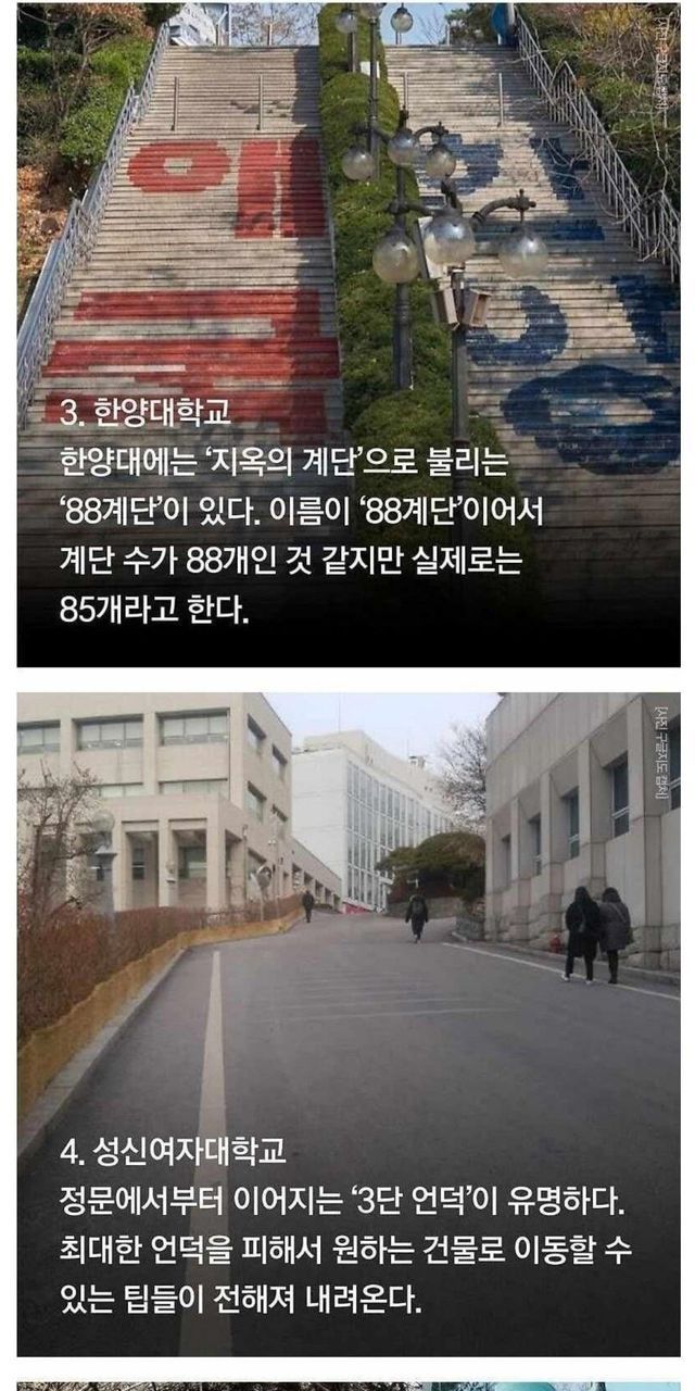 언덕으로 악명높은 대학 9곳.