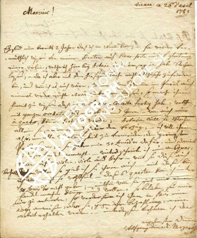 이번에 경매로 낙찰된 편지를 모차르트가 쓴 1783년은 ‘하이든 사중주집’의 작곡을 마무리하기 전이다.