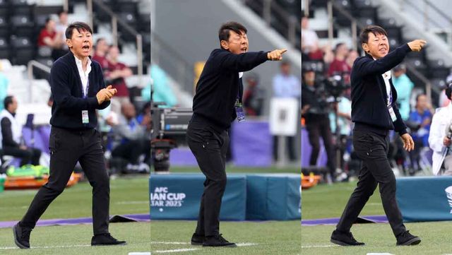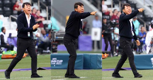 인도네시아 신태용 감독이 1월 28일(현지시간) 카타르 도하 자심 빈 하마드 스타디움에서 열린 2023 아시아축구연맹(AFC) 카타르 아시안컵 16강전 인도네시아와 호주의 경기에서 선수들에게 작전 지시를 하고 있다. / 뉴스1