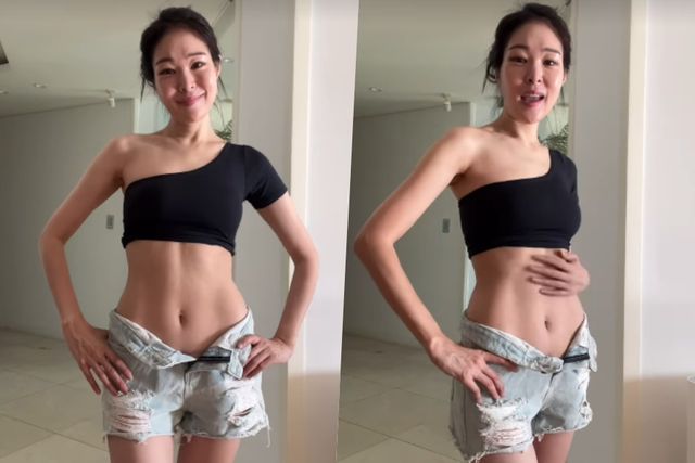 공개된 영상 속 미자는 언밸런스 숄더 브라톱에 데님 핫팬츠를 입고 몸매를 뽐내고 있다. 특히 바지 지퍼까지 풀어 헤친 미자는 먹방 촬영이 잦은 근황에도 군살 하나 없는 몸매로 시선을 강탈했다. 특히 잘록한 복부에 자리한 선명한 11자 복근까지, 보는 이의 부러움을 자아냈다.