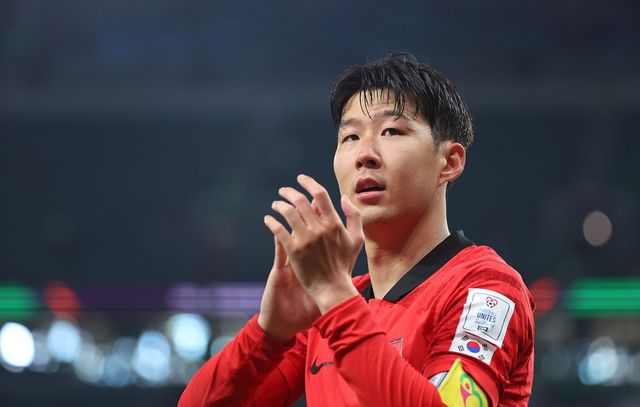2022년 12월 3일 오전(한국 시각) 카타르 알라이얀의 에듀케이션 시티 스타디움에서 열린 2022 카타르 월드컵 조별리그 H조 3차전 대한민국과 포르투갈 경기에서 포르투갈을 2-1로 이기며 16강 진출에 성공한 한국의 손흥민이 관중들에게 박수를 보내고 있다. / 연합뉴스