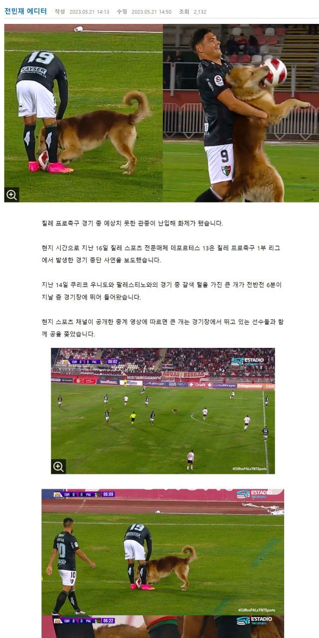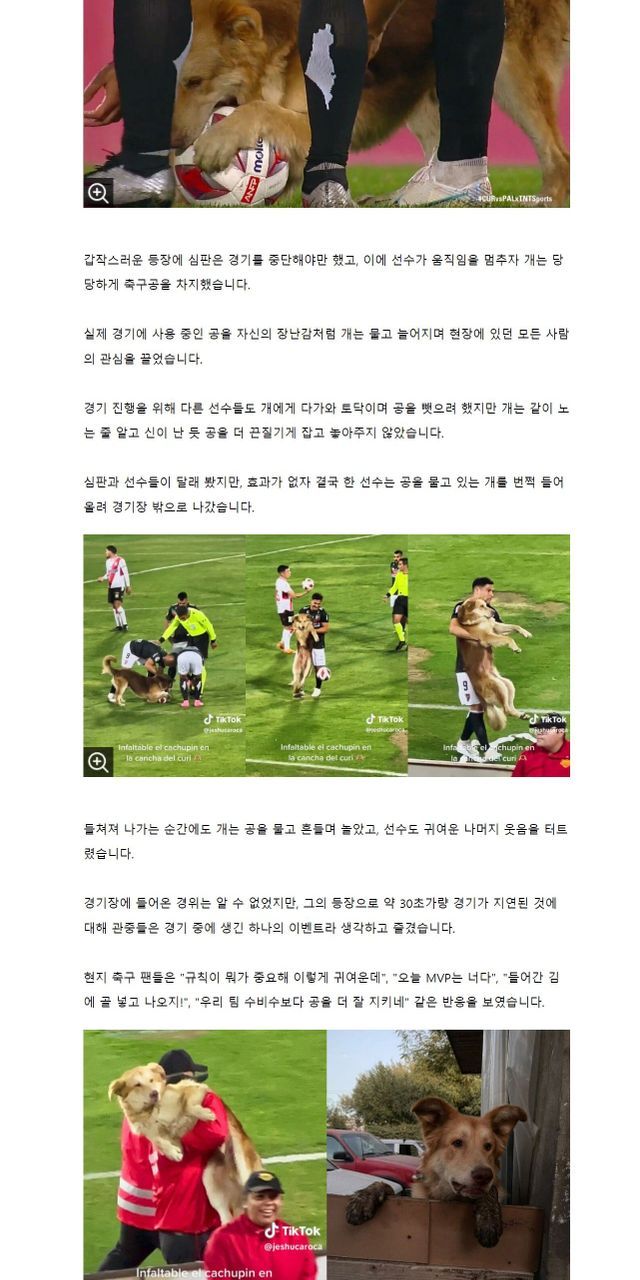 퇴장당하는 순간까지!…경기 중 난입한 개의 남다른 수비 실력 화제