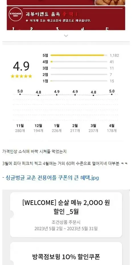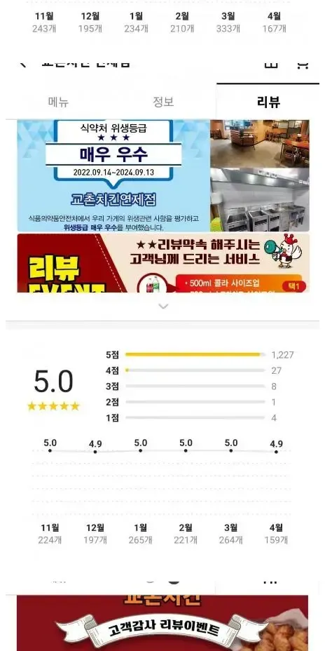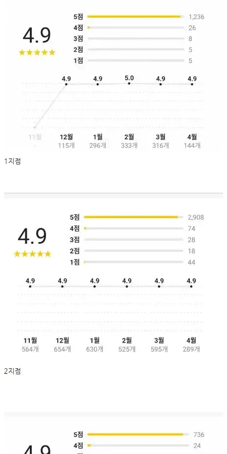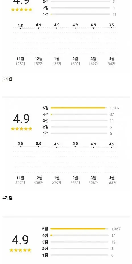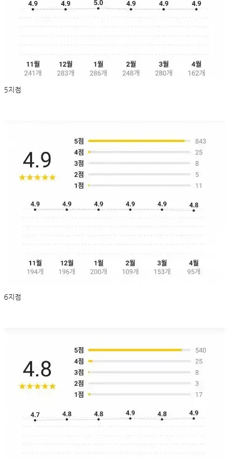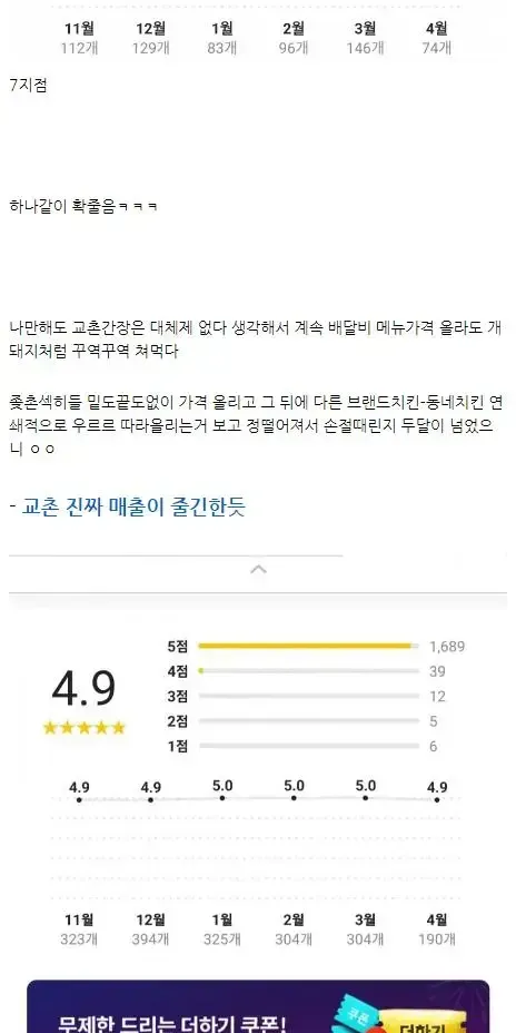진짜 ㅈ되가는 중인 교촌 지점별 판매량.