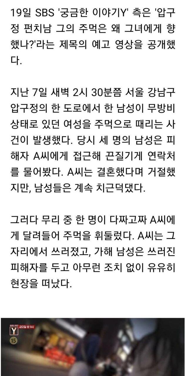 압구정 거리 女얼굴에 ‘풀스윙 펀치’…배우 지망생, 뼈 부서진채 기절