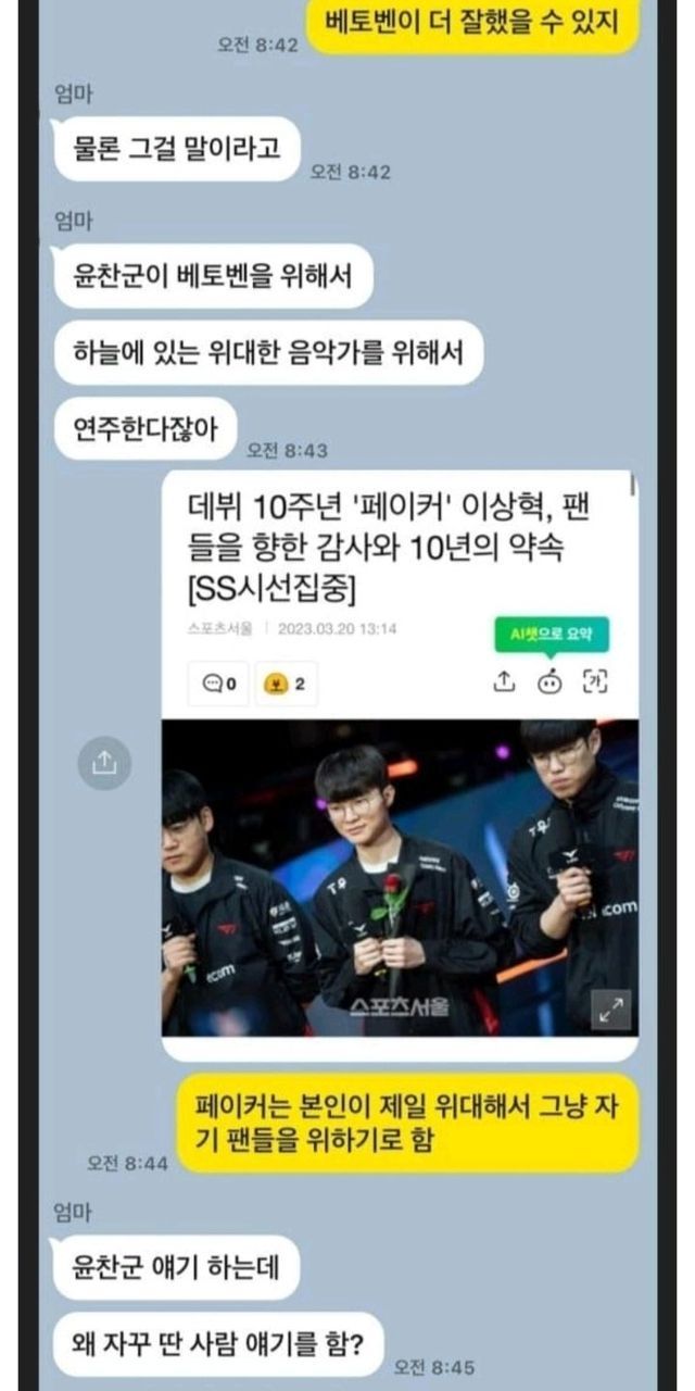 피아니스트 임윤찬 v 페이커로 갈드컵하는 어머니와 아들