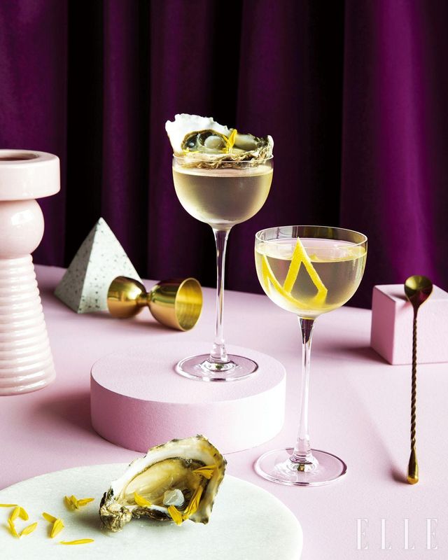 재료 굴 2개, 진 · 드라이 베르무트 80ml씩, 얼음 · 장식용 레몬 약간씩.