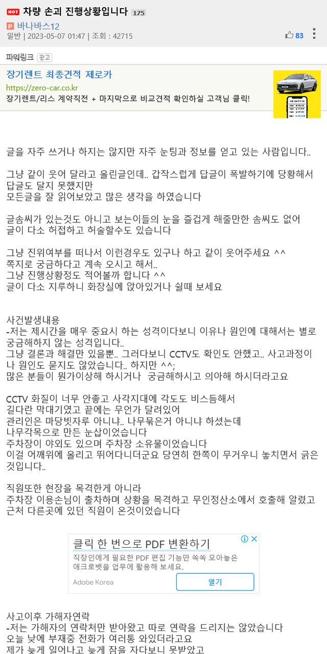 아우디 손괴 후기글.