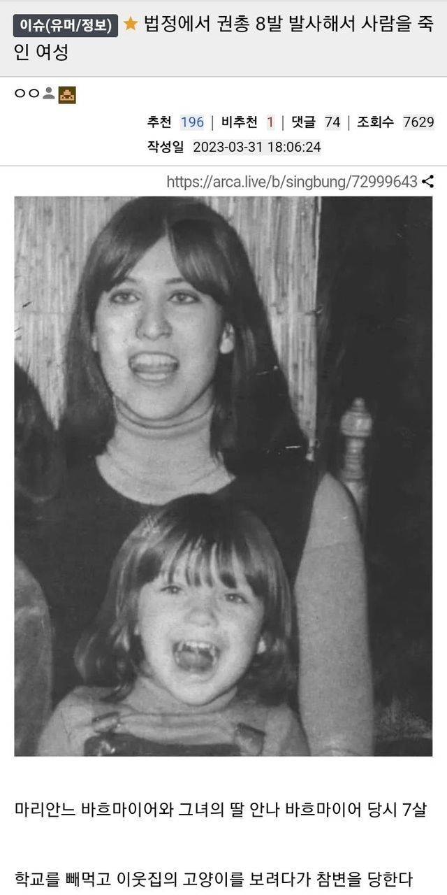 법정에서 권총 8발 발사해서 사람을 죽인 여성.
