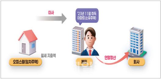 근로자 엄씨는 2023년 11월 30일 아파트 취득으로 유주택자가 돼 월세액 세액 공제를 받을 수 없으나, 규정을 몰라 2023년 11월까지 매월 30만원씩 부담한 오피스텔 월세 지출분을 모두 세액공제 받았다.